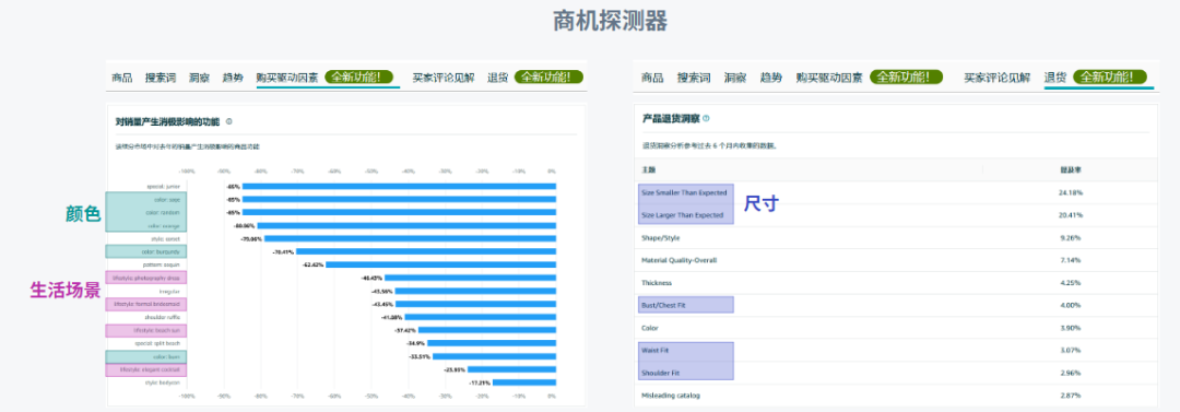 痛点出发,解决疑虑:仅罗列优点不够!利用商机探测器查看同类产品买家评论中的"负面主题"(如:材质差、尺寸不准、拉链易坏、色差大)。在五点中针对性回应这些痛点!