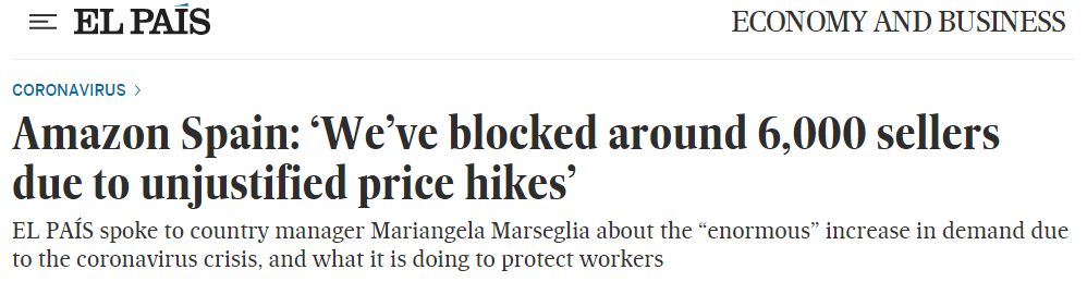一、亚马逊西班牙站,约6000个卖家账号被暂停,50万种产品被判不合理涨价