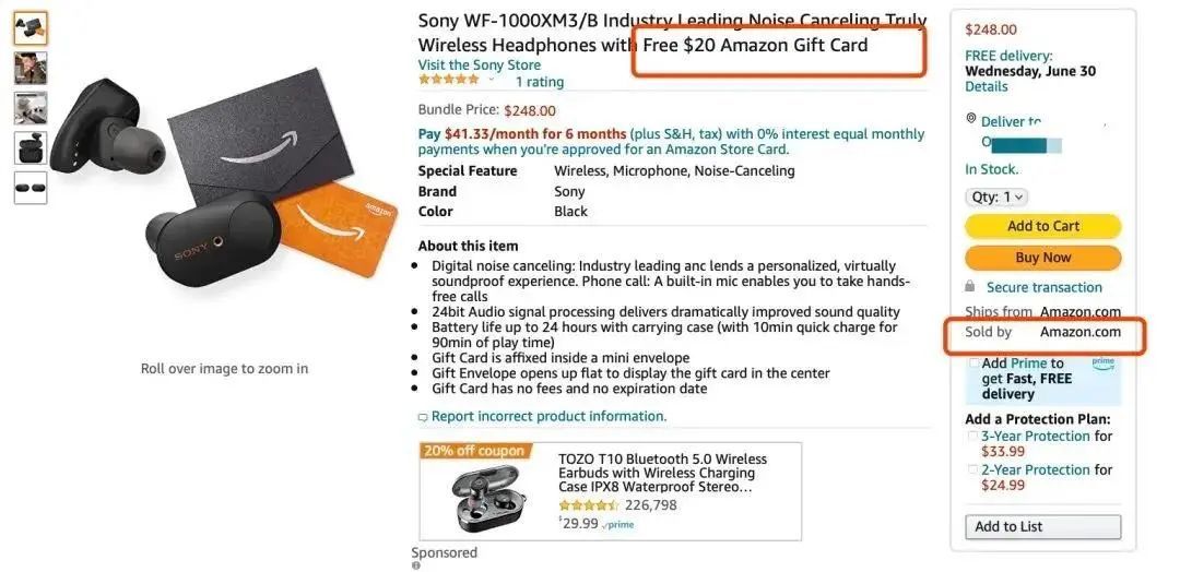 上个月《华尔街日报》点名泽宝送礼品卡索评事件还没有过去多久,但现在发现亚马逊自营直接就在自己产品的标题写上:Free $20 Amazon Gift Card!