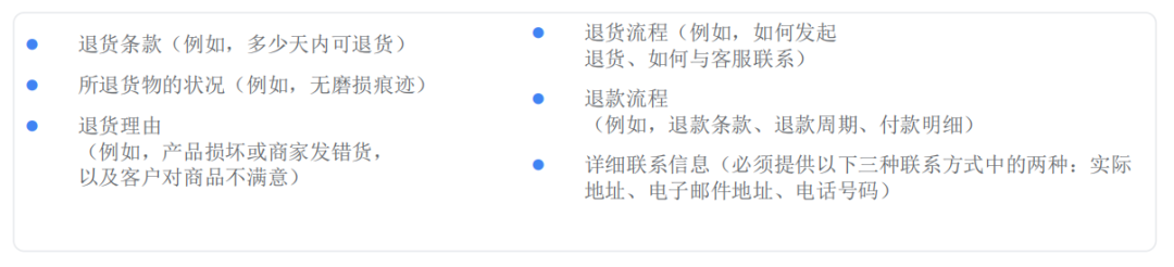 为确保购物体验公开透明,卖家必须在自己的网站上明确说明退款和退货流程,包括所有相关要求和时间期限;如果不接受退货或退款,也需明确说明。