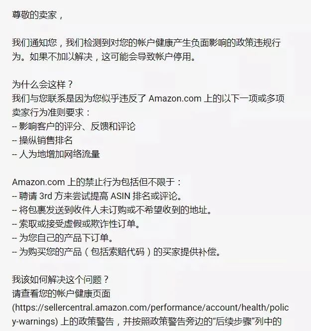 最近,桨小歌在后台收到很多卖家小伙伴的咨询,原因是:某些个别卖家收到了亚马逊的"警告"邮件,如下图: