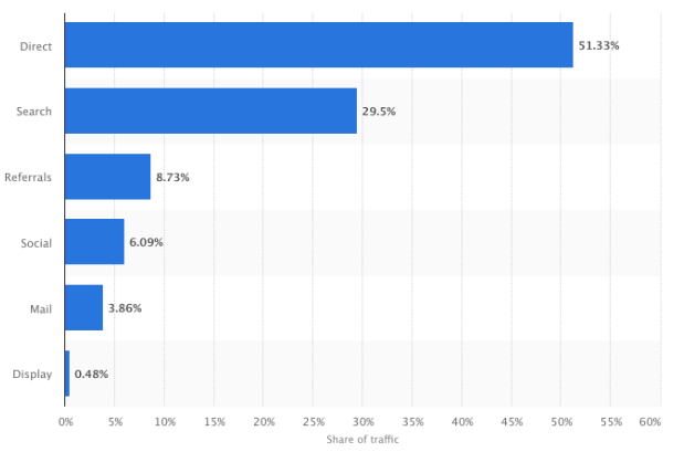 从图表中我们可以看出,虽然站内流量仍是亚马逊的主要流量来源.