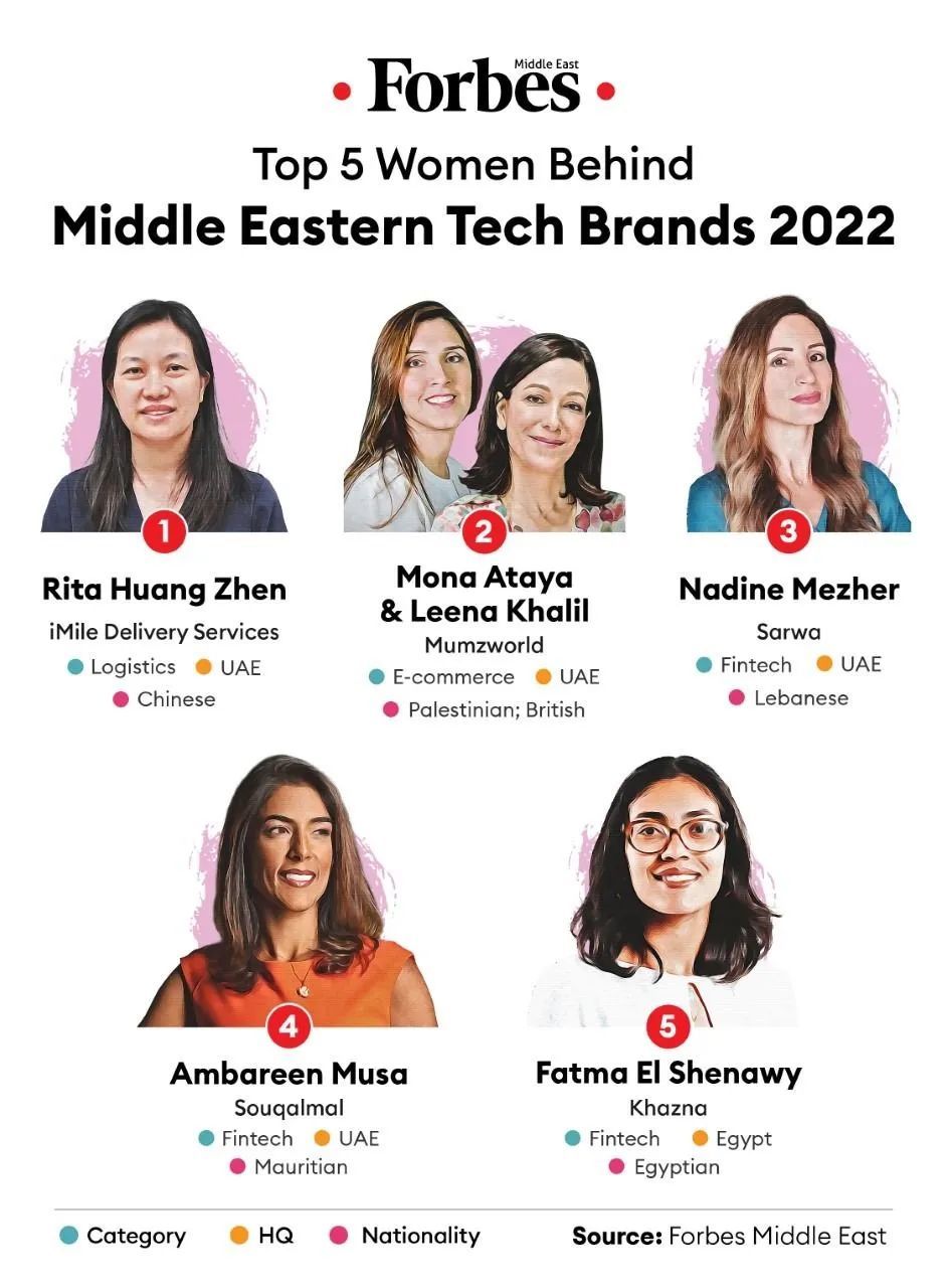 最近福布斯中东发布了" 2022 年中东品牌背后的女性"年度排名,iMile创始人Rita在"科技"和"物流"两个榜单上位居榜首。