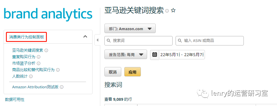 关于亚马逊品牌分析板块,我就不赘述了,大家都耳熟能详了,我分享一个点就是关于亚马逊官方对数据的释义:消费类行为控制面板。刘润老师的《五分钟商学院》有一期专门聊过消费者行为数据,作为解释我觉得非常恰当。