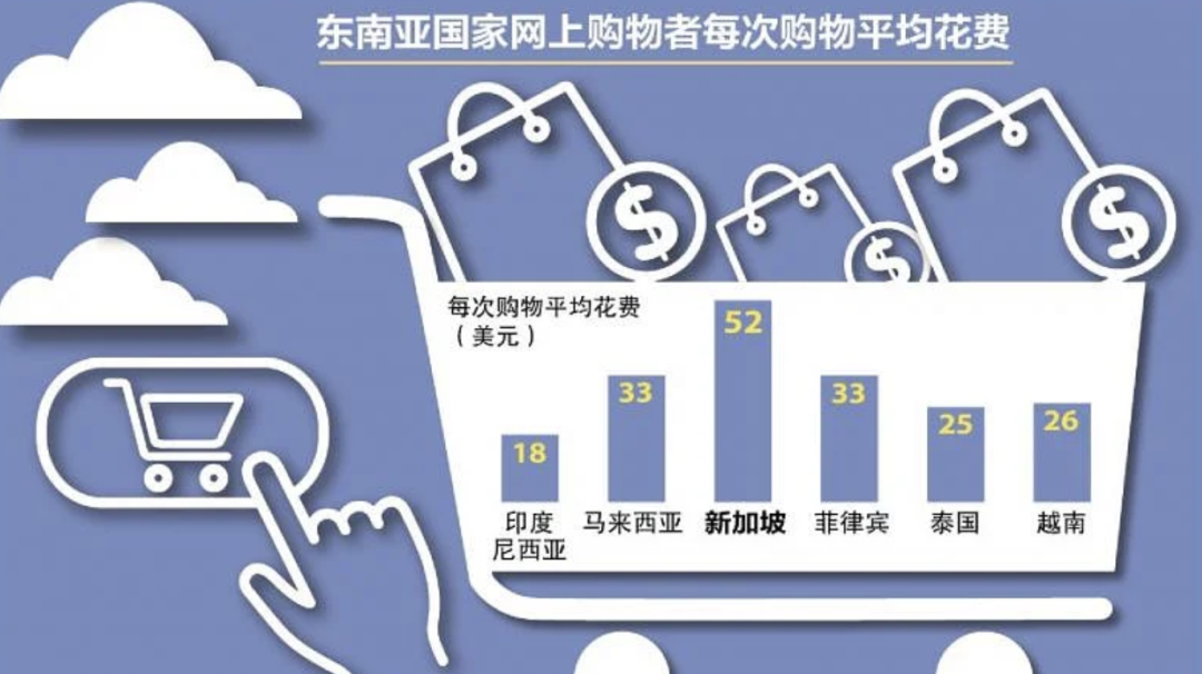 6月24消息,根据东南亚物流快递公司Ninja Van与国际物流公司DPDgroup联合发布的跨境电子商务报告。数据显示,自疫情以来,东南亚六国买家每次网购的平均花费为:印度尼西亚18美元、马来西亚33美元、新加坡52美元、菲律宾33美元、泰国25美元、越南26美元。新加坡最高,印尼最低。