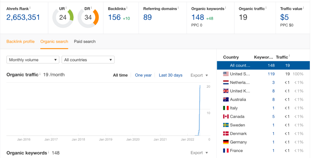 我们先来看看示例站点的数据,截止2022年6月20日,网站目前的数据为:
