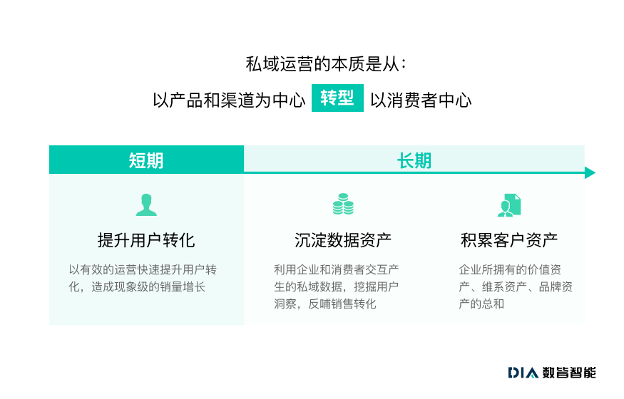 私域的短期目标是提升用户转化,长期目标在于积累数据资产和客户资产