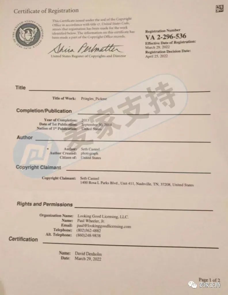 原告公司: Seth Casteel