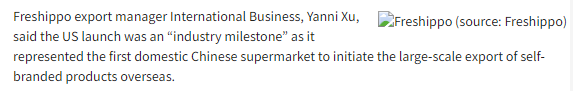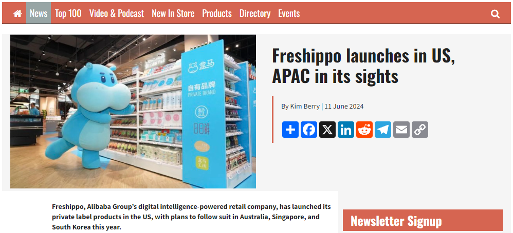 据悉,阿里巴巴集团旗下数字智能零售公司Freshippo(盒马鲜生)在美国推出了其自有品牌,并计划进驻澳大利亚、新加坡和韩国等其他地区。